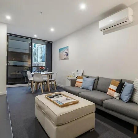 Tento apartmán je 15 minut chůze od vlakového nádraží Flinders Street.
